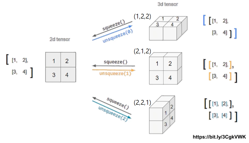 - unsqueeze : 차원의 개수가 1인 차원을 추가