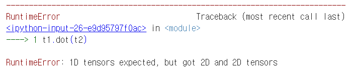행렬곱셈 연산은 dot이 아닌 mm 사용